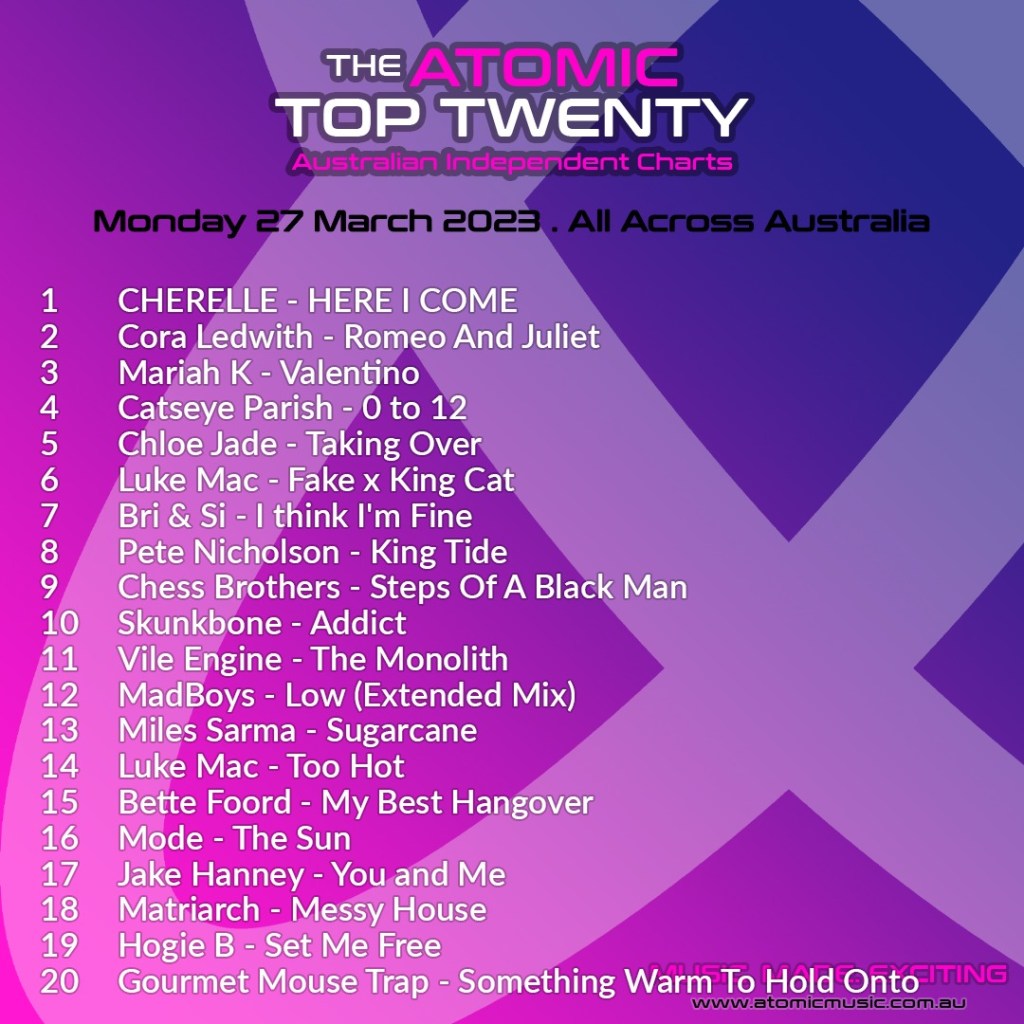 The month of March ended perfectly for Cherelle as her song “Here I Come” reached the top of the Atomic Top Twenty chart.